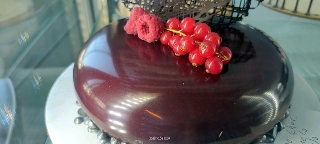 A la entrada había diversos pasteles, hubo uno que me pareció una obra de arte. Creo que no me atrevería a comerlo, pero estéticamente me gustó mucho: