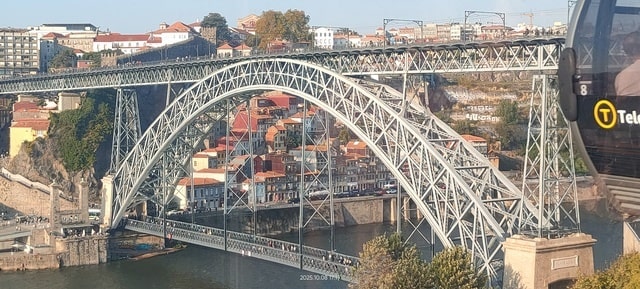 A un lado del río Duero está Oporto, en el otro Porto. Hay muchos puentes que unen ambas ciudades y muchas veces se habla de las dos como si fueran la misma. Hoy quiero hablar tan solo de un detalle, del teleférico que une la parte baja de Vila Nova de Gaia, la que está al lado del Duero y la parte alta.