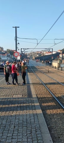 Este puente merece unas palabras. Como se ve, une Oporto a la izquierda, con Vilanova de Gaia que está a la derecha. Se inauguró en 1886 y es obra del ingeniero Théophile Seyrig (discípulo y colaborador de Gustave Eiffel). Como pude verse hay dos niveles. El de bajo es peatonal y tiene 180m de longitud. Por el de arriba circulan el metro de oporto y peatones y tiene una longitud de 390 m. El arco central, metálico, tiene una luz de 172 m.