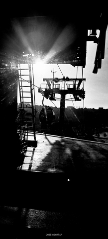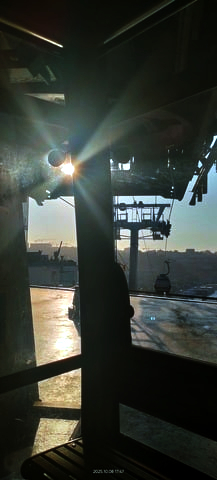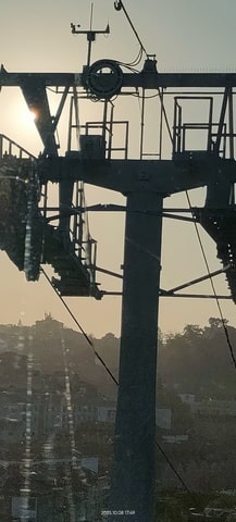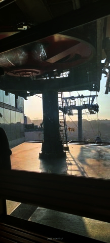 Con la luz de fondo, la maquinaria del teleférico de Gaia adquiere cierto dramatismo.