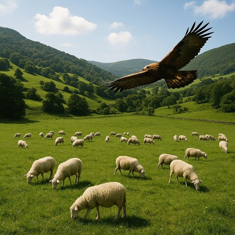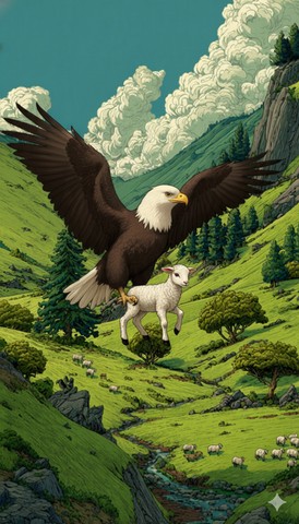 Áquila llevándose un cordedo. Imagen de IA creada conn la ayuda de Meta.ai y de Gemini