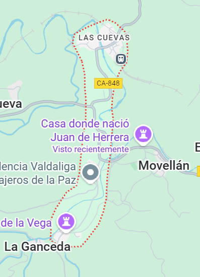 El río del Escudo y el barrio donde nación Juan de Herrera. mapa gentileza de Google Maps.