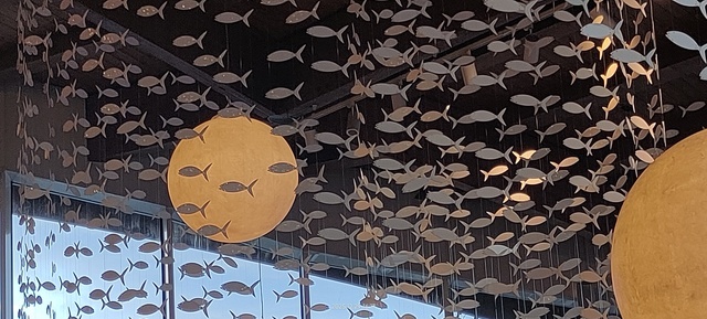 Era hora de almorzar. Dada la ubicación del acuario, en una esquina de la isla. Lo más rápido era comer en el propio acuario. Por suerte, disponen de un excelente restaurante que se llama La Nave [¿otra reminiscencia de España?].
