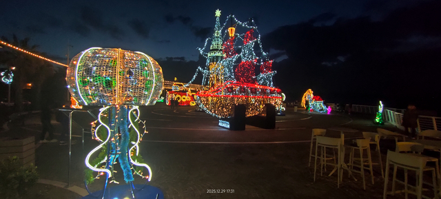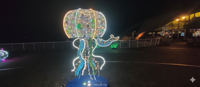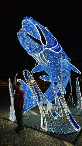 La suerte quiso que aquella noche maltesa no fuera un pozo oscuro, sino un archipiélago de luces. Miles —quizá millones— de ledes dibujaban criaturas imposibles: submarinos dignos del capitán Nemo, medusas suspendidas como lámparas vivas, galeones fantasma navegando en silencio por plazas y paseos. Todo era luz, luz, luz… una constelación terrestre que desafiaba a la noche y la obligaba a retroceder, aunque fuera por unas horas, ante la imaginación encendida de la isla.