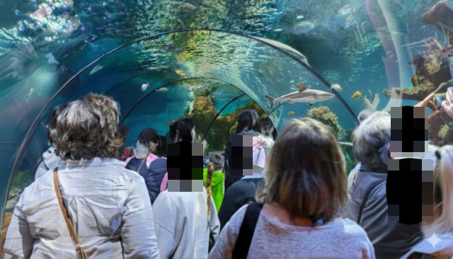 El momento estrella —literal y figuradamente— es el túnel acristalado. Allí el tiempo se ralentiza. Los tiburones pasan sobre tu cabeza con esa elegancia que solo tienen los animales que no necesitan demostrar nada. Las rayas, en cambio, parecen saludar con sus alas ondulantes. Es imposible no sentir un pequeño estremecimiento, mezcla de respeto y fascinación.